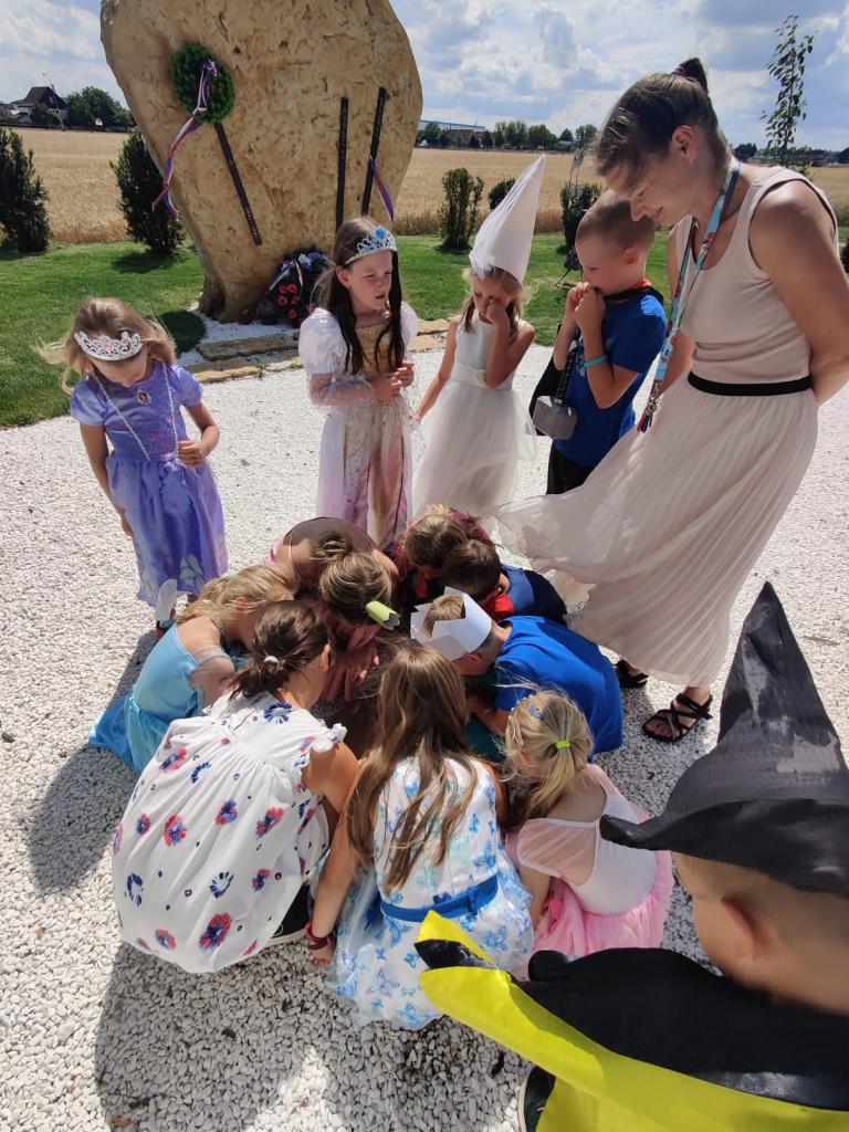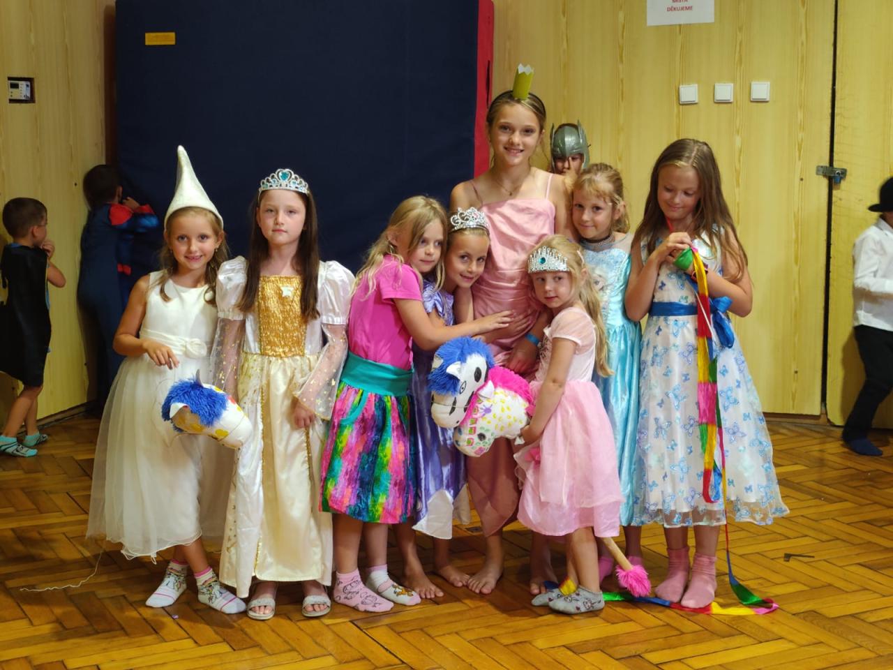 Celý týden si Sokolíci hráli na prince a princezny.Provázela nás královna s králem, kterým sokolíci pomáhali. Výletovali jsme po dalších královstvích, závodili, hráli jsme hry, soutěžili jsme s nezvyklými nástroji, užívali si léta a vody, nechyběla ani cesta za pokladem a závěrečná opékačka.