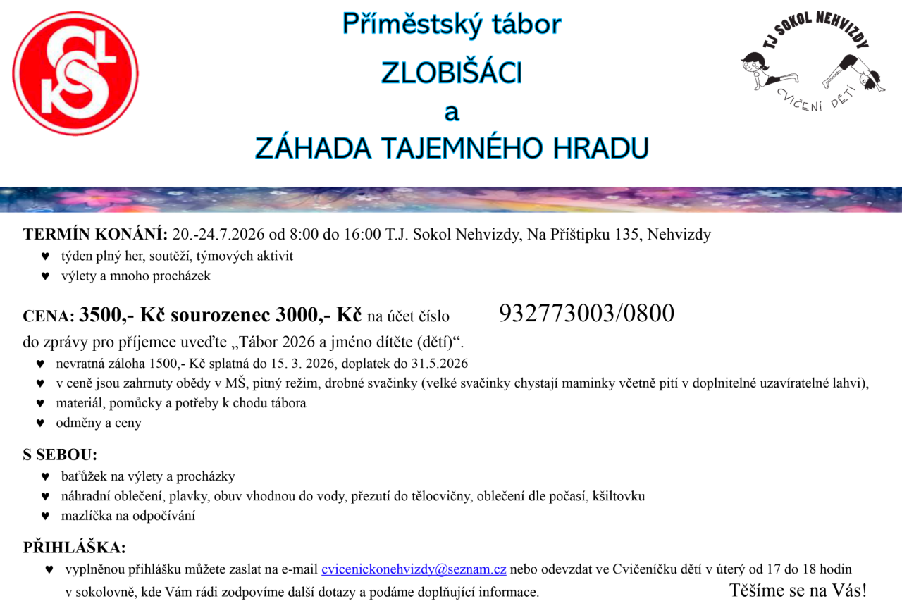 I v letošním roce pro vaše naše Zlobišáky pořádáme příměstský tábor.